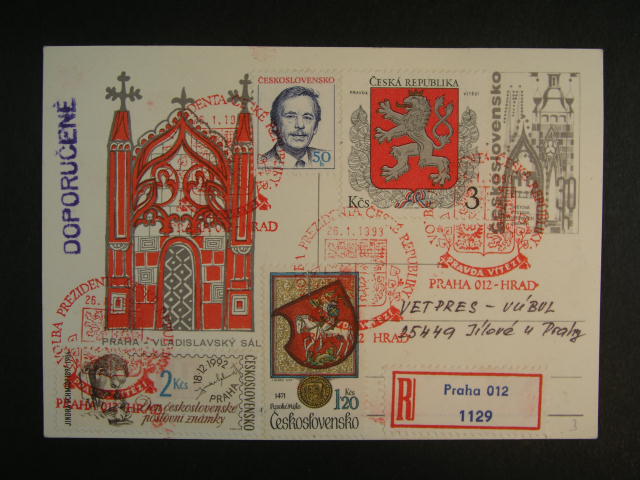 sestava 8 ks R-celistvosti, zajimave pestre a smisene frankatury CR a CSR s cervenymi raz. VOLBA PREZIDENTA CR 26.1.93