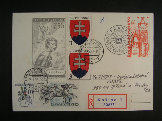 sestava 6 ks celistvosti se smis. frankaturami Cesko + Slovensko z r. 1993