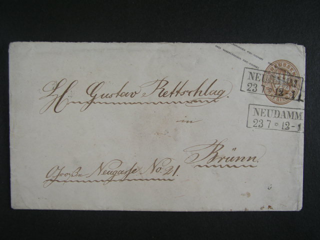1458 Prusko - celinova obalka DREI SILB. GR. s ram. raz. NEUDAMM a dopis do Vidne frank. zn. Mi. c. 16 (3x) s ramec. raz. MAGDEBURG BAHNHOF, neporusene pecete, pruch. a prich. raz. 300