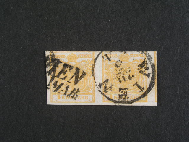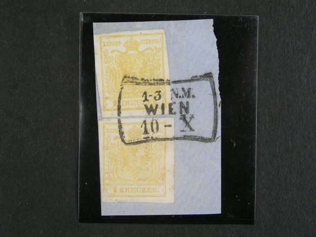 zn. Fe. c. 1 HP, typ III, na vystrizku (2x) s ramec. raz. WIEN 10 - X, 425 EUR