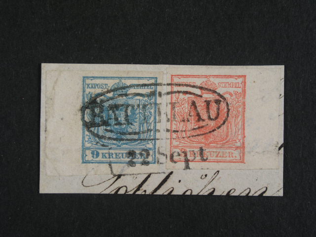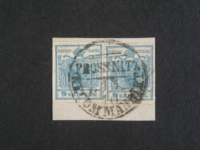 vystrizek frank. zn. Fe. c. 5 (2x) s jednokruh. raz. PROSNITZ RECOMMANDIRT 13.10.1851, mimoradna kvalita, mimoradna nabidka