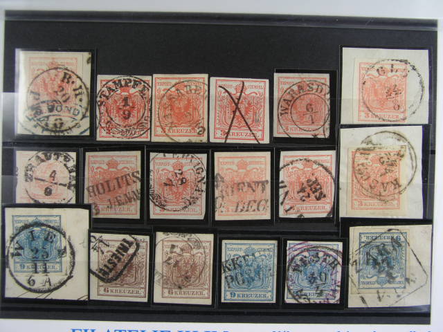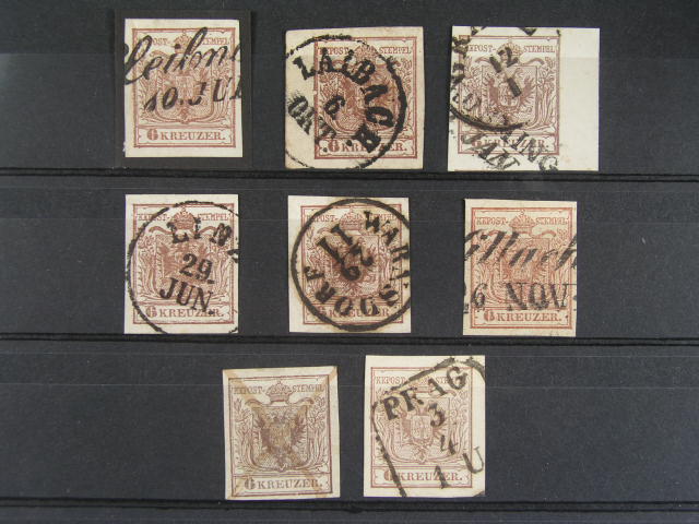 sestava 34 ks zn. a vystrizku z 1. - 8. emise, mj. Fe. c. 1, vybrana raz., na 6. emisi prusvitky, zajimave