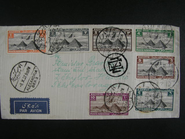 1848 Egypt - let. firemni dopis do CSR frank. zn. Mi. c. 164 - 9 + 173, pod. raz. ALEXANDRIA 8.10.37 300