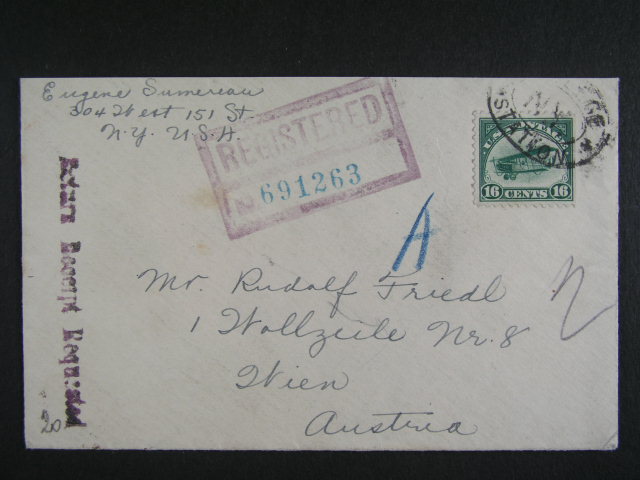 USA - R-dopis do Rakouska frank. zn. Mi. c. 249, pod. raz. NEW YORK 1923