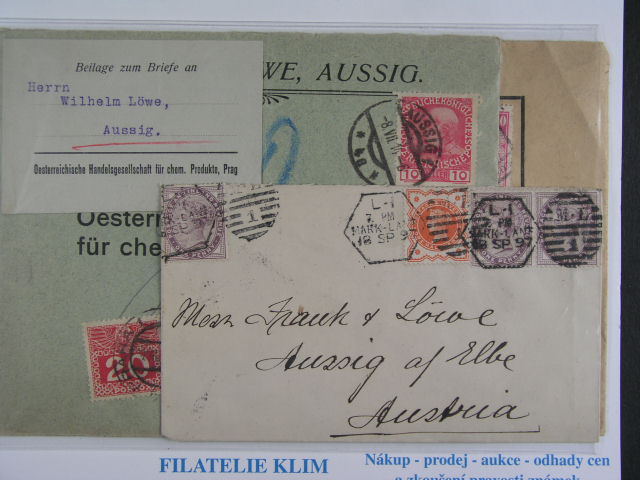 sestava 3 ks dopisu firemni korespondence z Rakouska, Anglie a Belgie z let 1897 -1929
