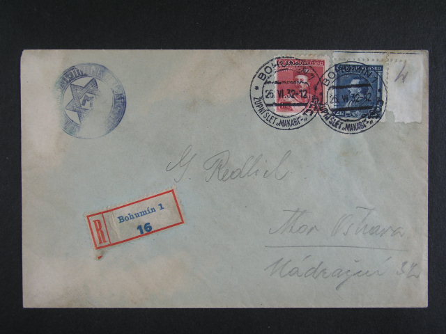 Judaika - R-dopis do Ostravy s pod. raz. BOHUMIN ZUPNI SLET "MAKABI" 26.6.32