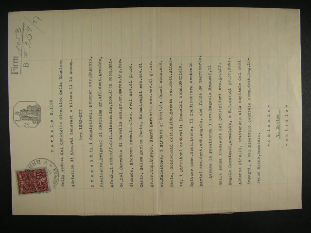 Kolky - uredni listina z r. 1933 se smis. frankaturou kolku CSR + tisteny kolek Italie, dobra kvalita, zajimave