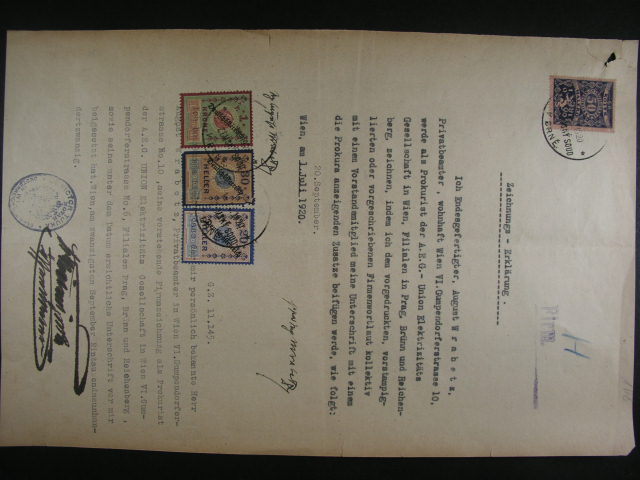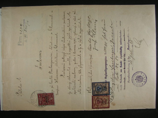 Kolky - dve uredni listiny z r. 1920 se smis. frankaturou kolku CSR + Deutscheösterreich