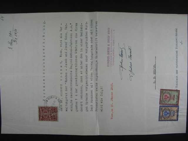 Kolky - dve uredni listiny z r. 1925 se smis. frankaturou kolku CSR a Rakouska