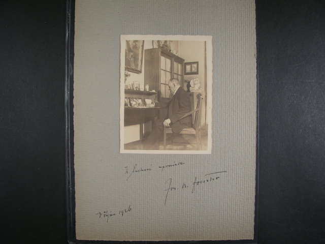 Foerster - jednobar. fotografie prilepena na prirodnim papire s venovanim a podpisem, Na rubove strane cast notoveho partu je zivot sen! s podpisem Berta Foerster - Lantererova