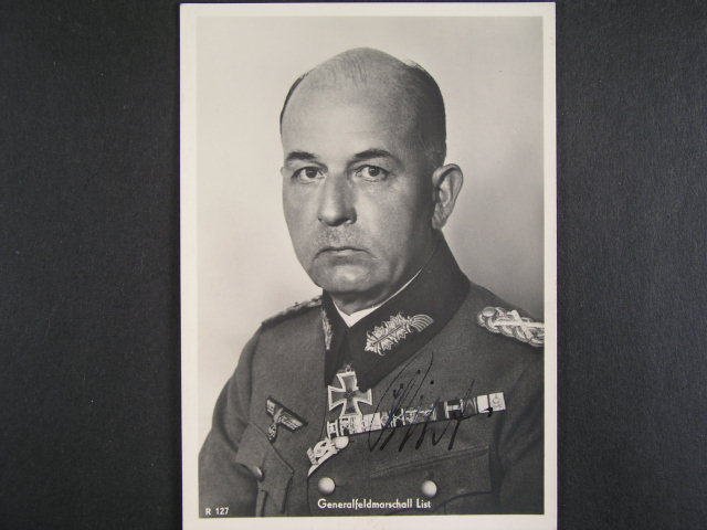 jednobar. fotopohlednice Generalfeldmarschall LIST s vlatnorucnim podpisem, lux. kvalita