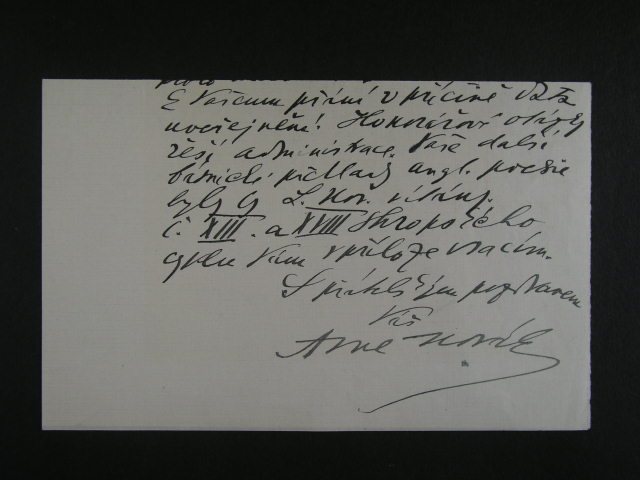 Novak Arne - dopis do Brna s vlastnorucnim podpisem