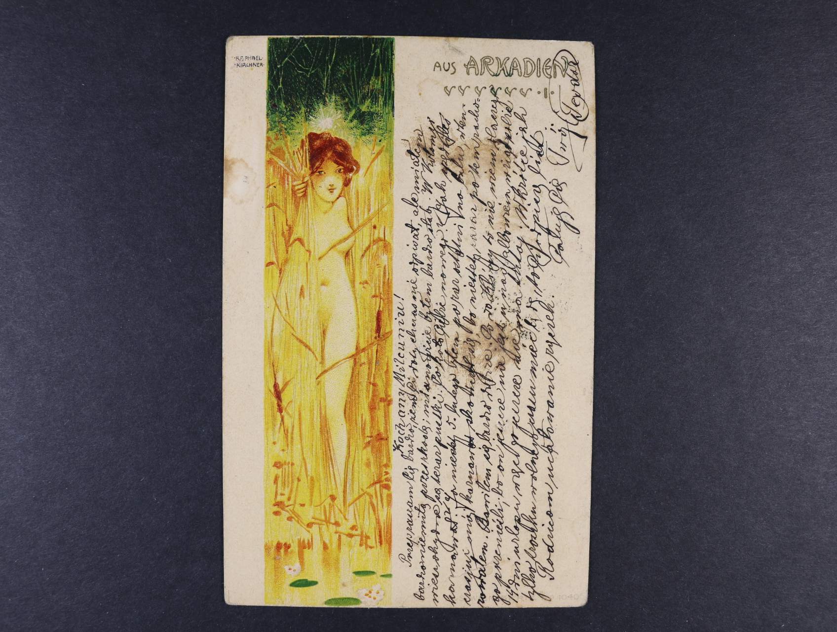 1141 Umělecké - Raphael Kirchner, bar. litograf. (AUS ARKADIEN), dl. adresa, použitá 1901 600