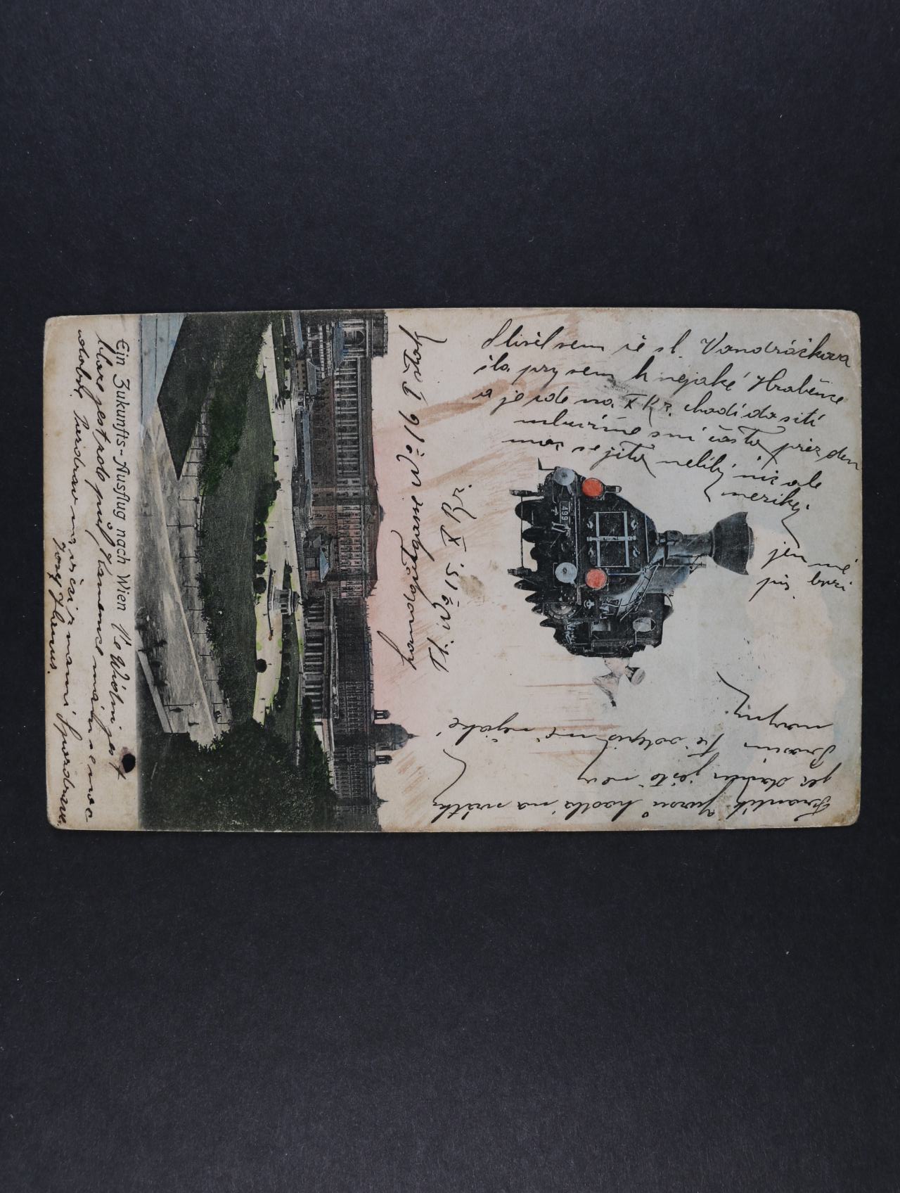 1143 Vlaky - bar. litograf. koláž, dl. adresa, použitá, odlepená zn. 250
