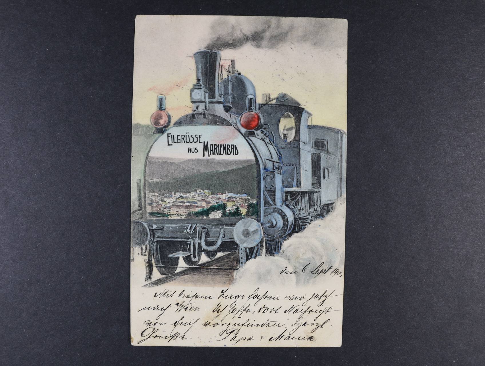 1144 Vlaky - bar. litograf. použitá 1905 300