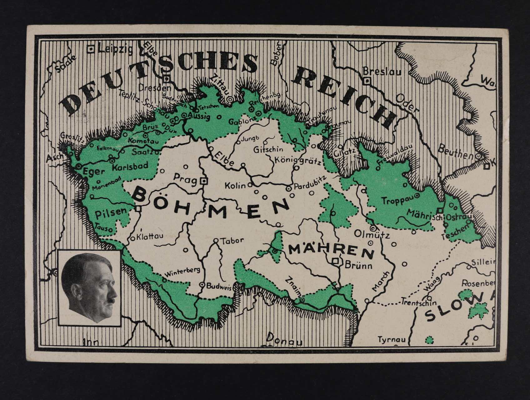 1156 Dvoubar. pohlednice, mapka záboru Sudet, portrét A.H., vyd. 1.10.1938 500