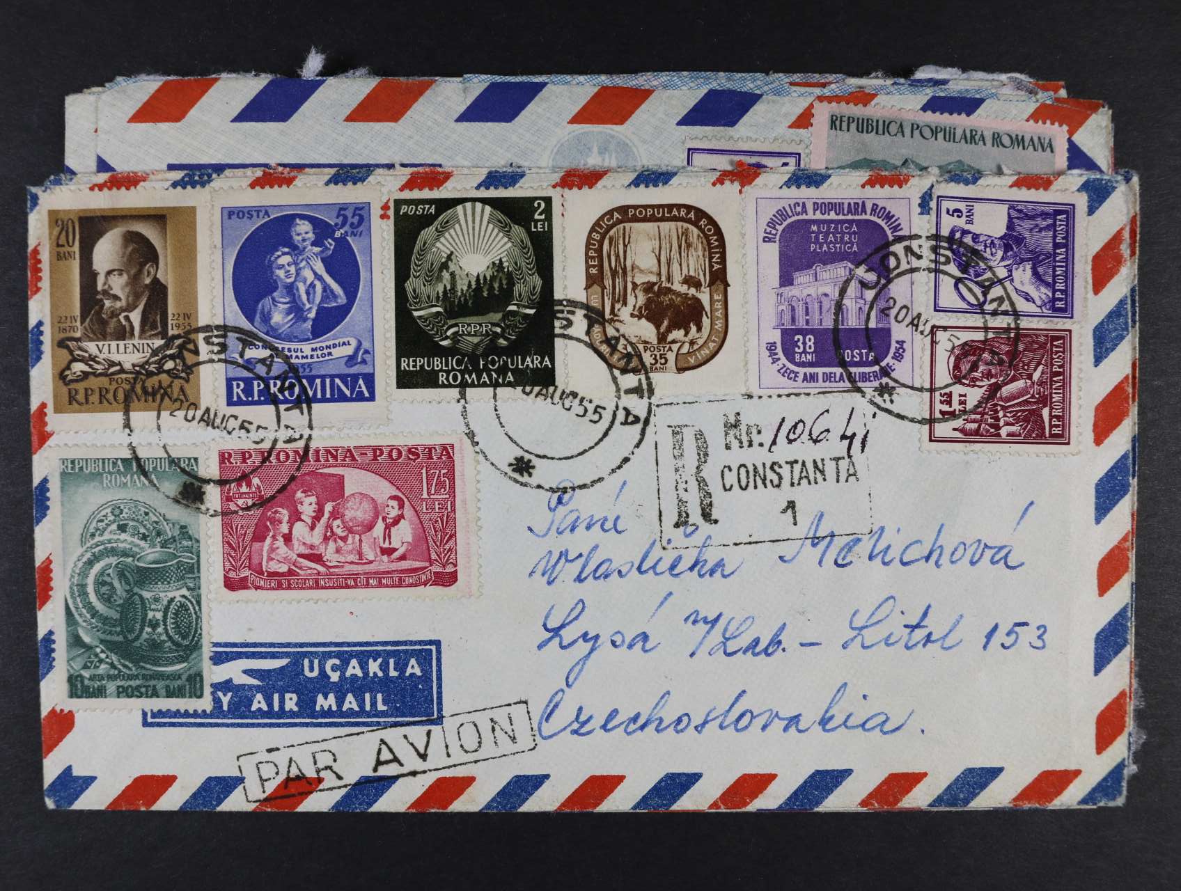 sestava 10 ks let. R a EXPRES dopisů do ČSR z let 1955- 56, pestré zajímavé frankatury