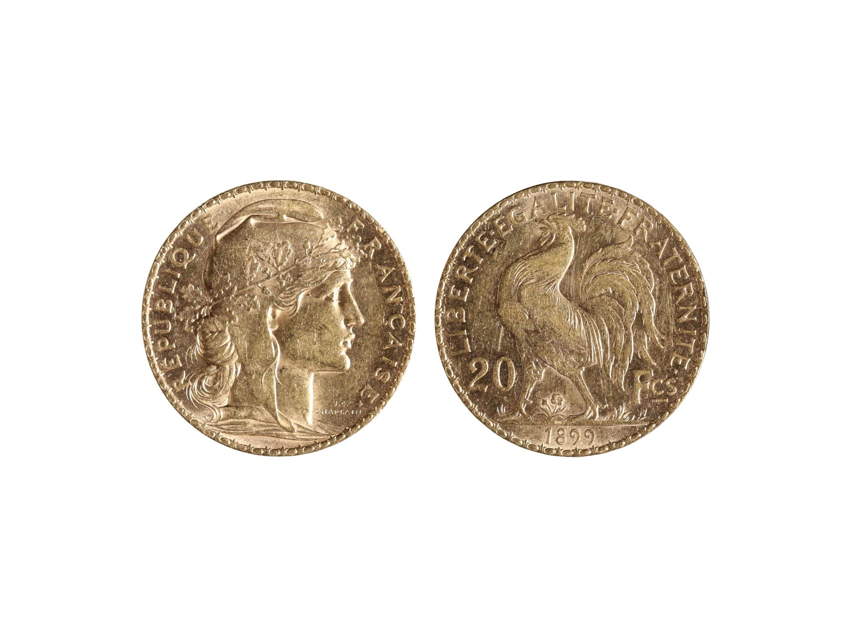 Francie - 20 Frank 1899 kohout, 6,451g, Au 0,900