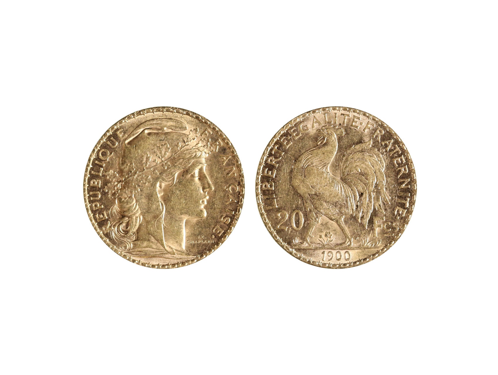 Francie - 20 Frank 1900 kohout, 6,451g, Au 0,900