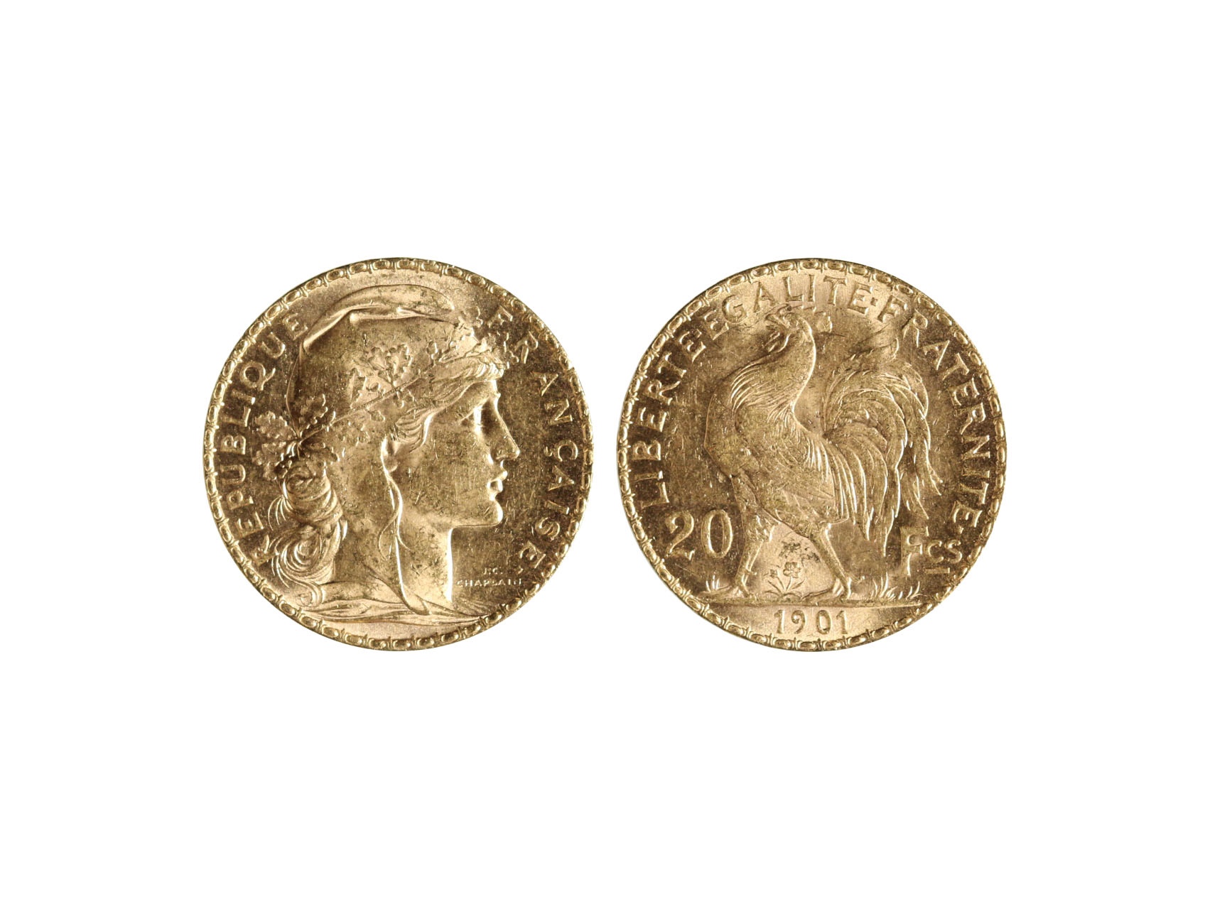 Francie - 20 Frank 1901 kohout, 6,451g, Au 0,900