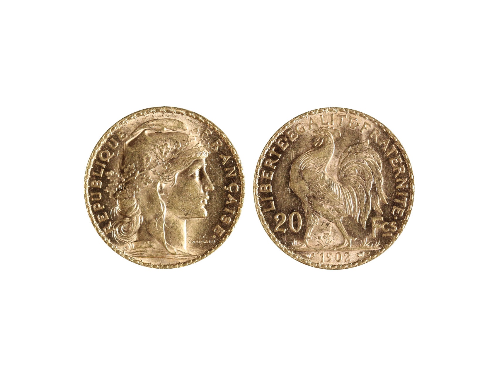 Francie - 20 Frank 1902 kohout, 6,451g, Au 0,900