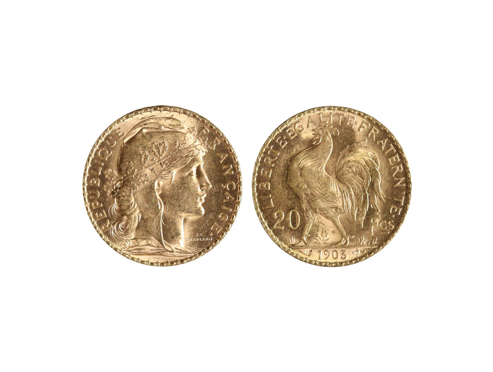 Francie - 20 Frank 1903 kohout, 6,451g, Au 0,900