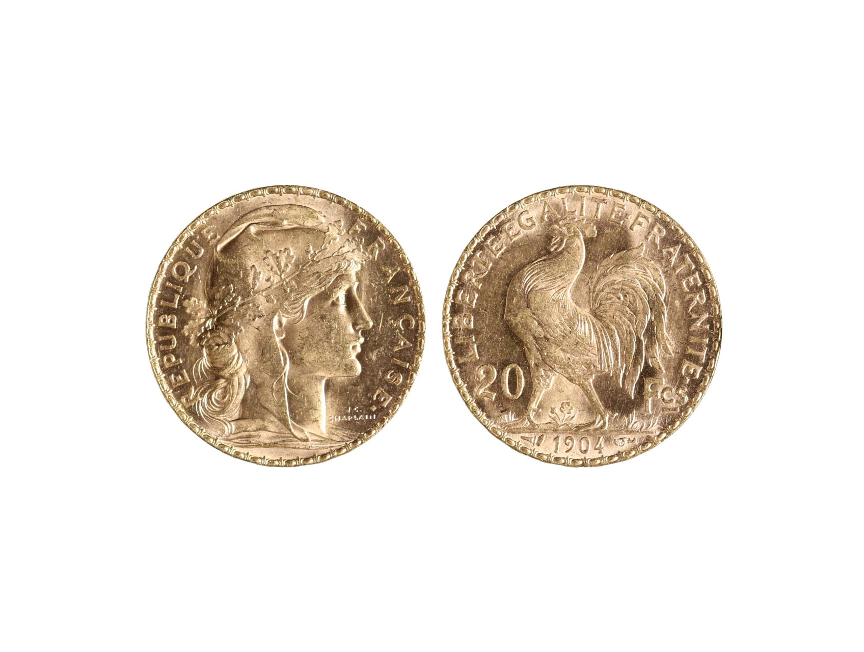Francie - 20 Frank 1904 kohout, 6,451g, Au 0,900
