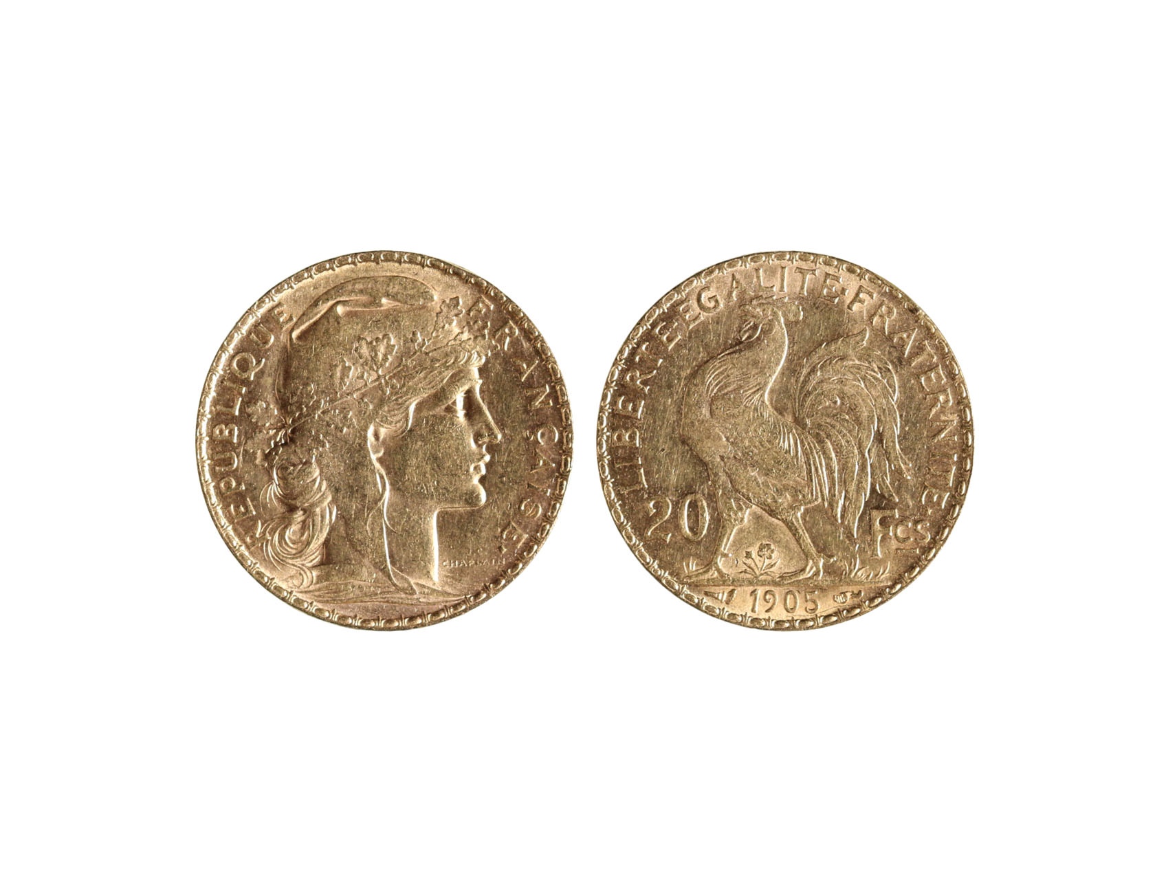 Francie - 20 Frank 1905 kohout, 6,451g, Au 0,900
