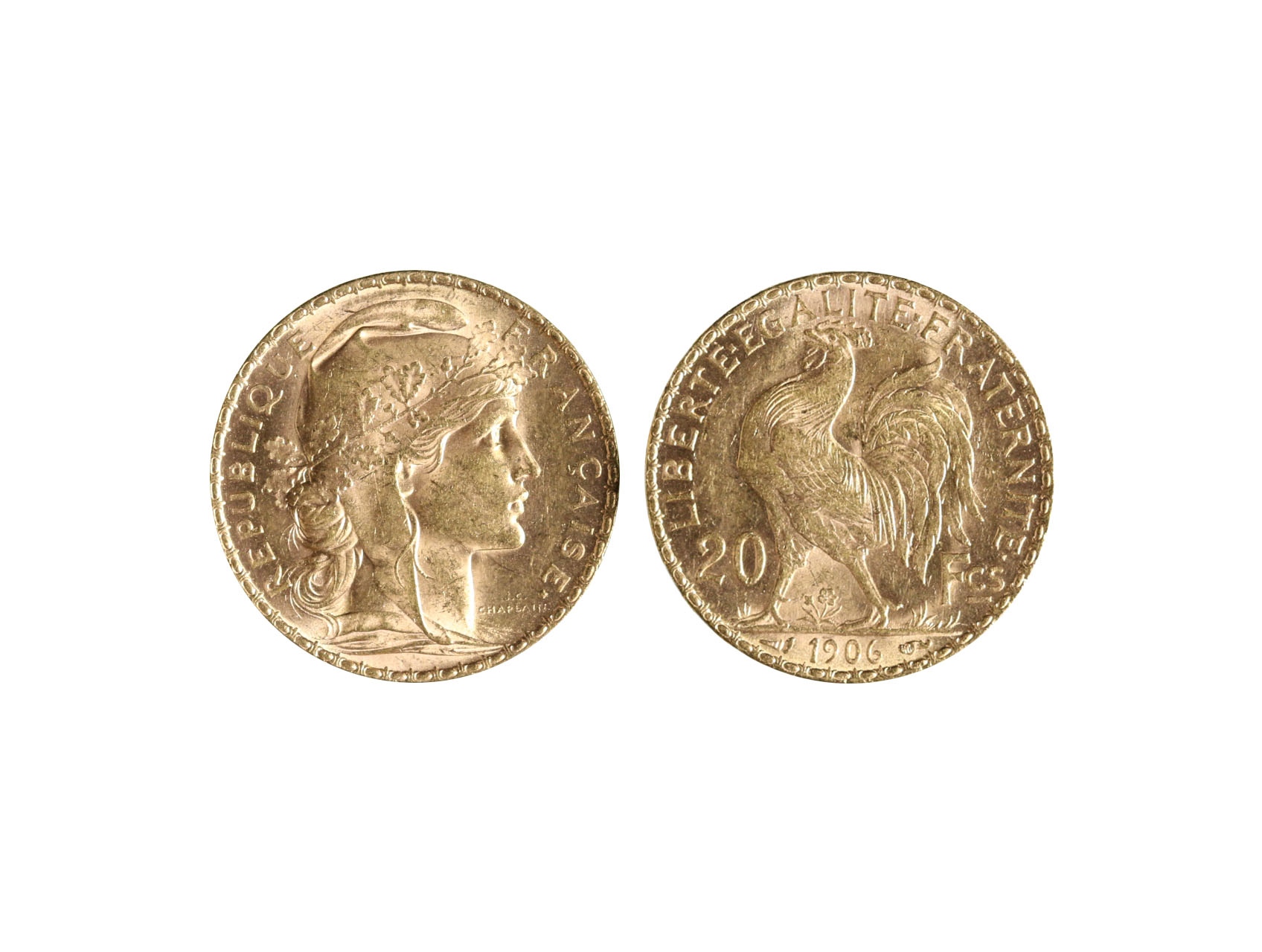 Francie - 20 Frank 1906 kohout, 6,451g, Au 0,900