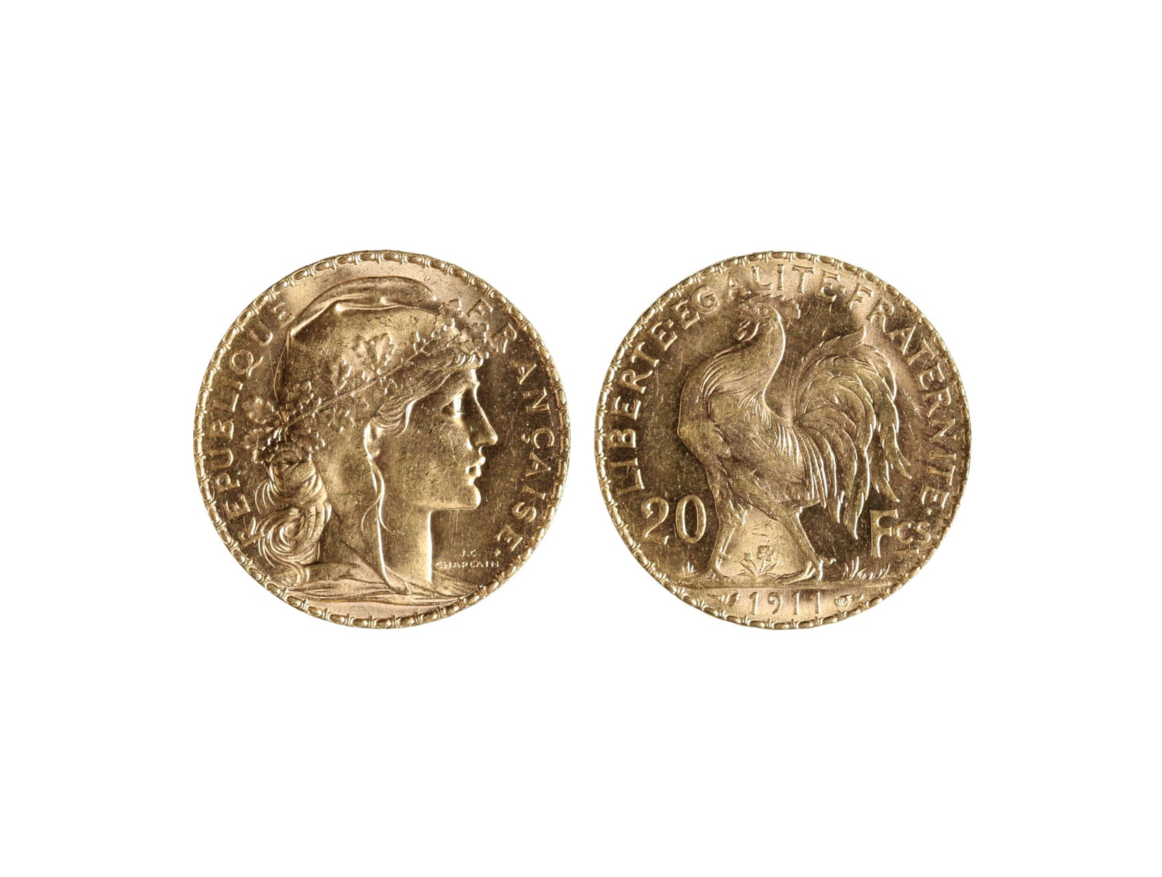 Francie - 20 Frank 1911 kohout, 6,451g, Au 0,900