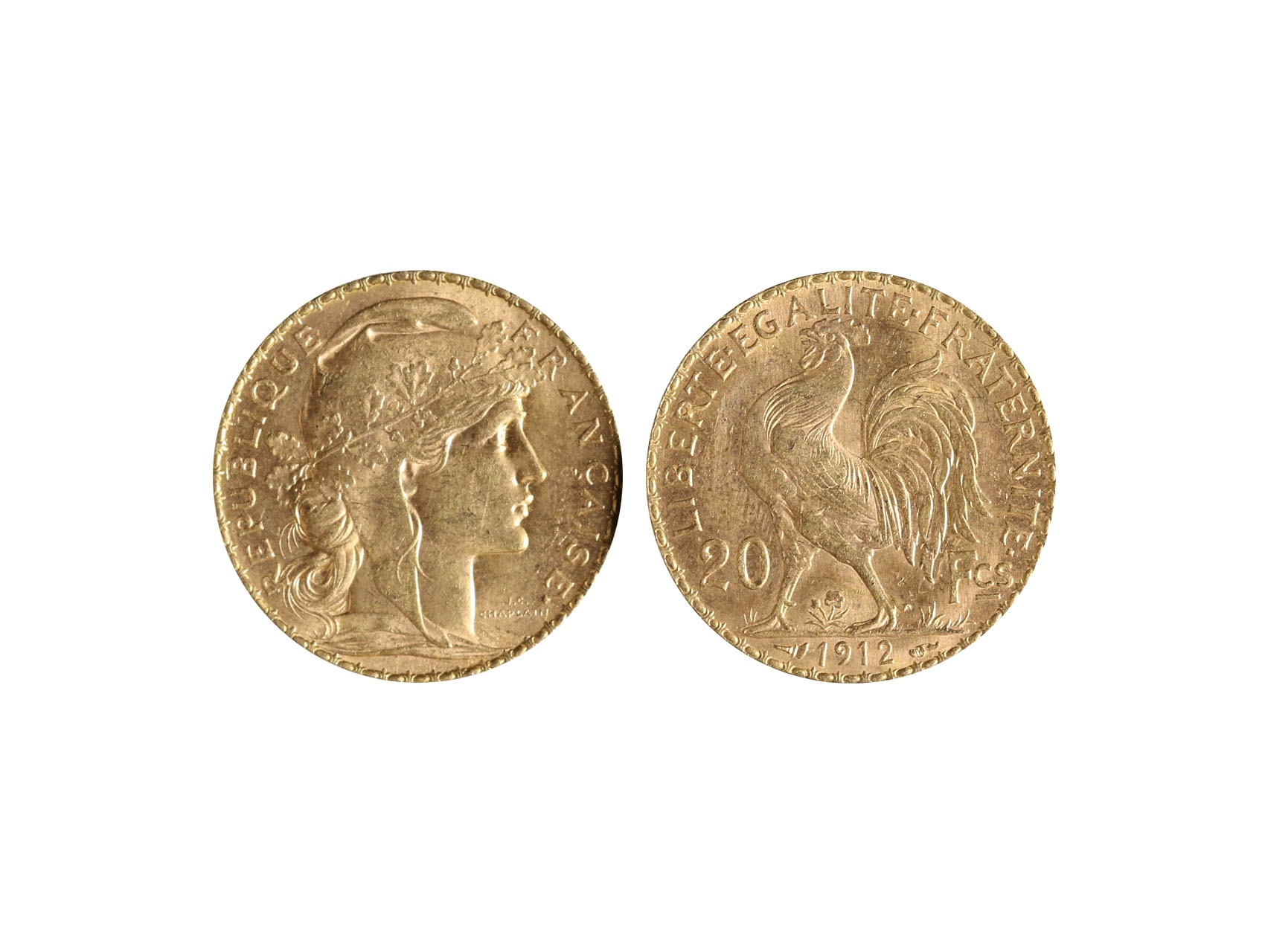 Francie - 20 Frank 1912 kohout, 6,451g, Au 0,900
