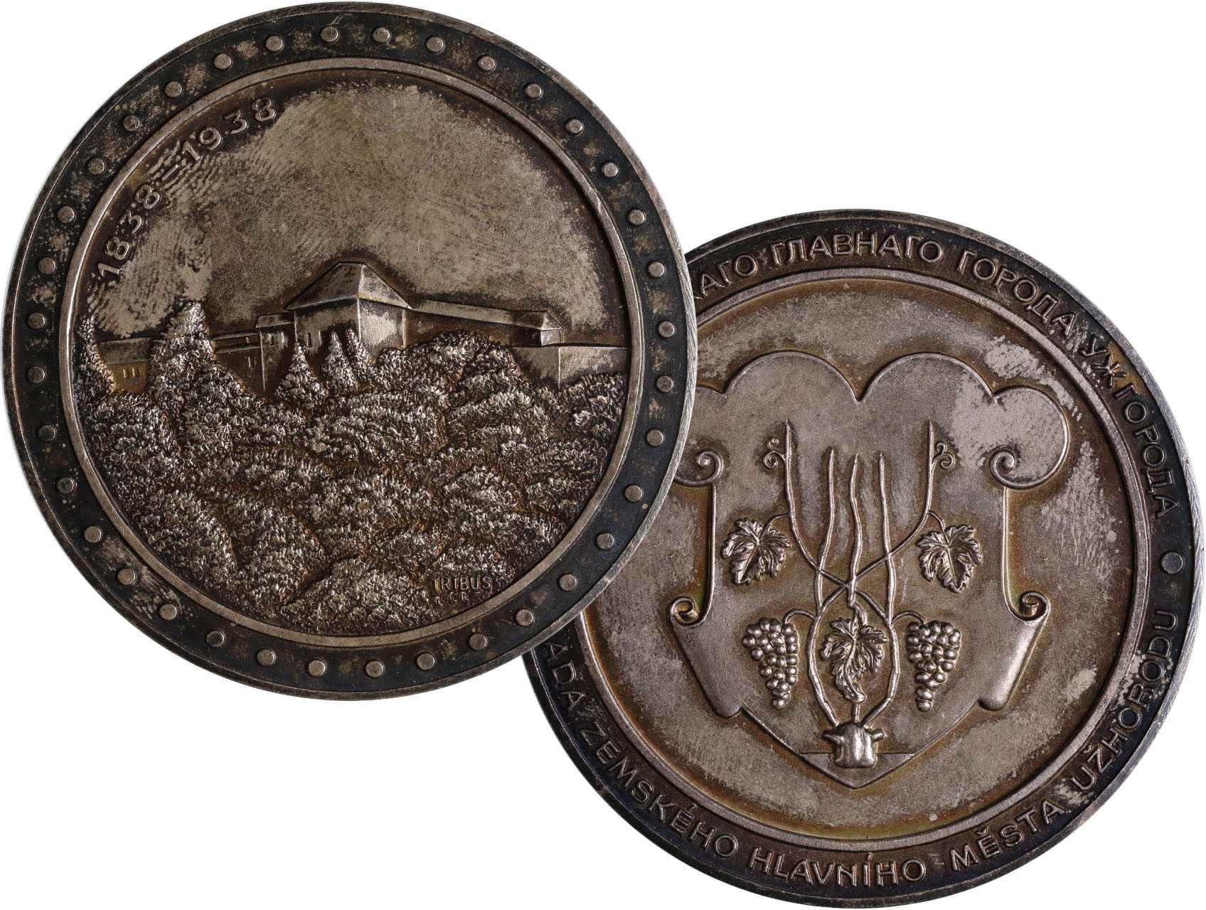 Užhorod - AE medaile Rady zemského hlavního města Užhorodu, 1838-1938, postříbřený bronz, průměr 65 mm