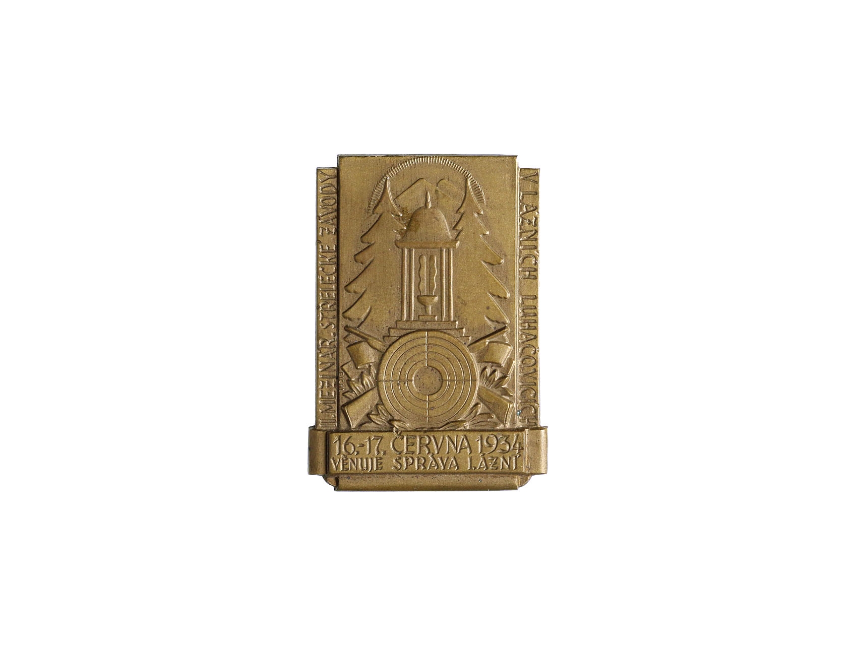 Pam. plaketa na II.mezinár. střelecké závody v Lázních Luhačovicích 16.-17. června 1934, bronz, rozměry 45x32 mm