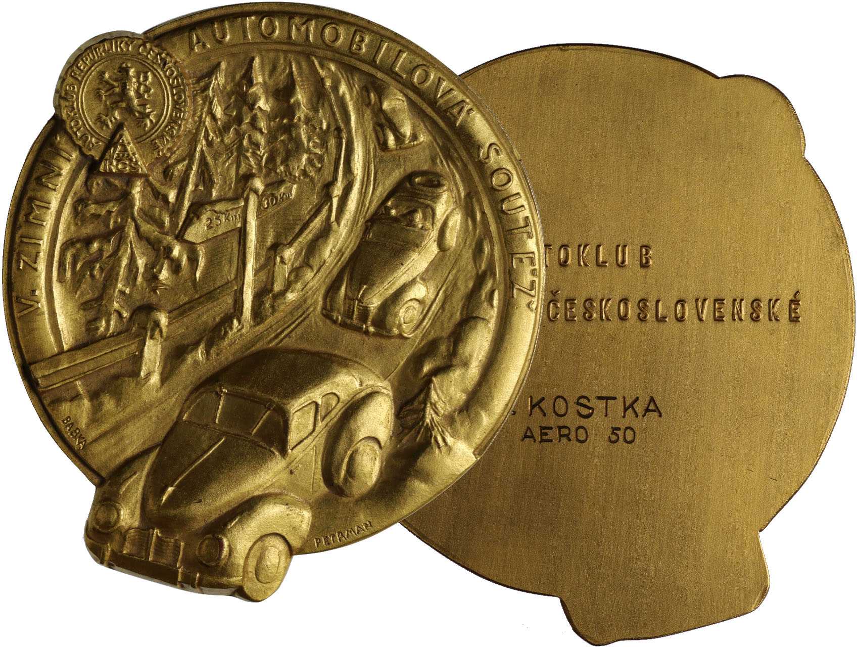 Motorismus - Československo, pozlacená AE medaile V. zimní automobilová soutěž, Autoklub Republiky Československé, signováno Babka, Petrman, průměr 72,5 mm