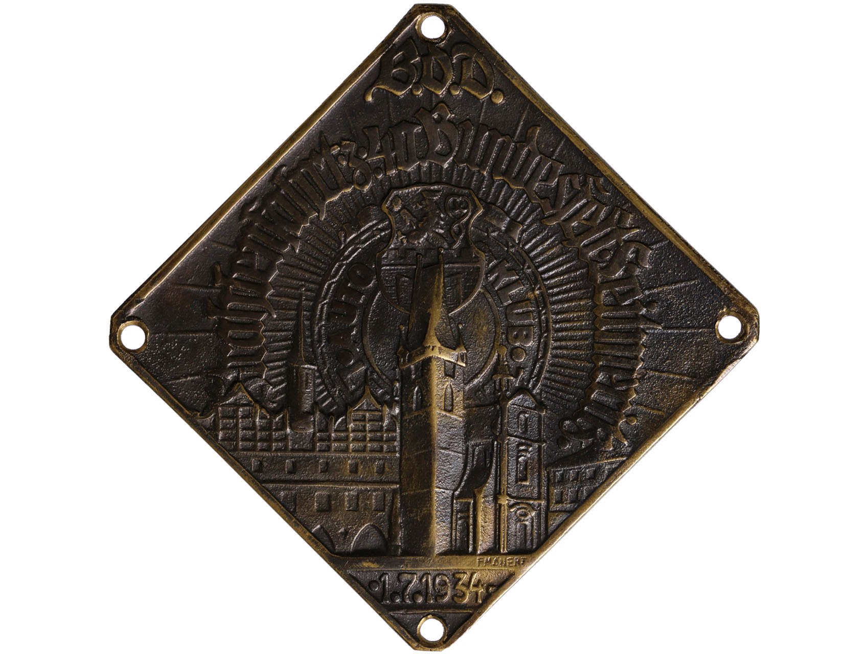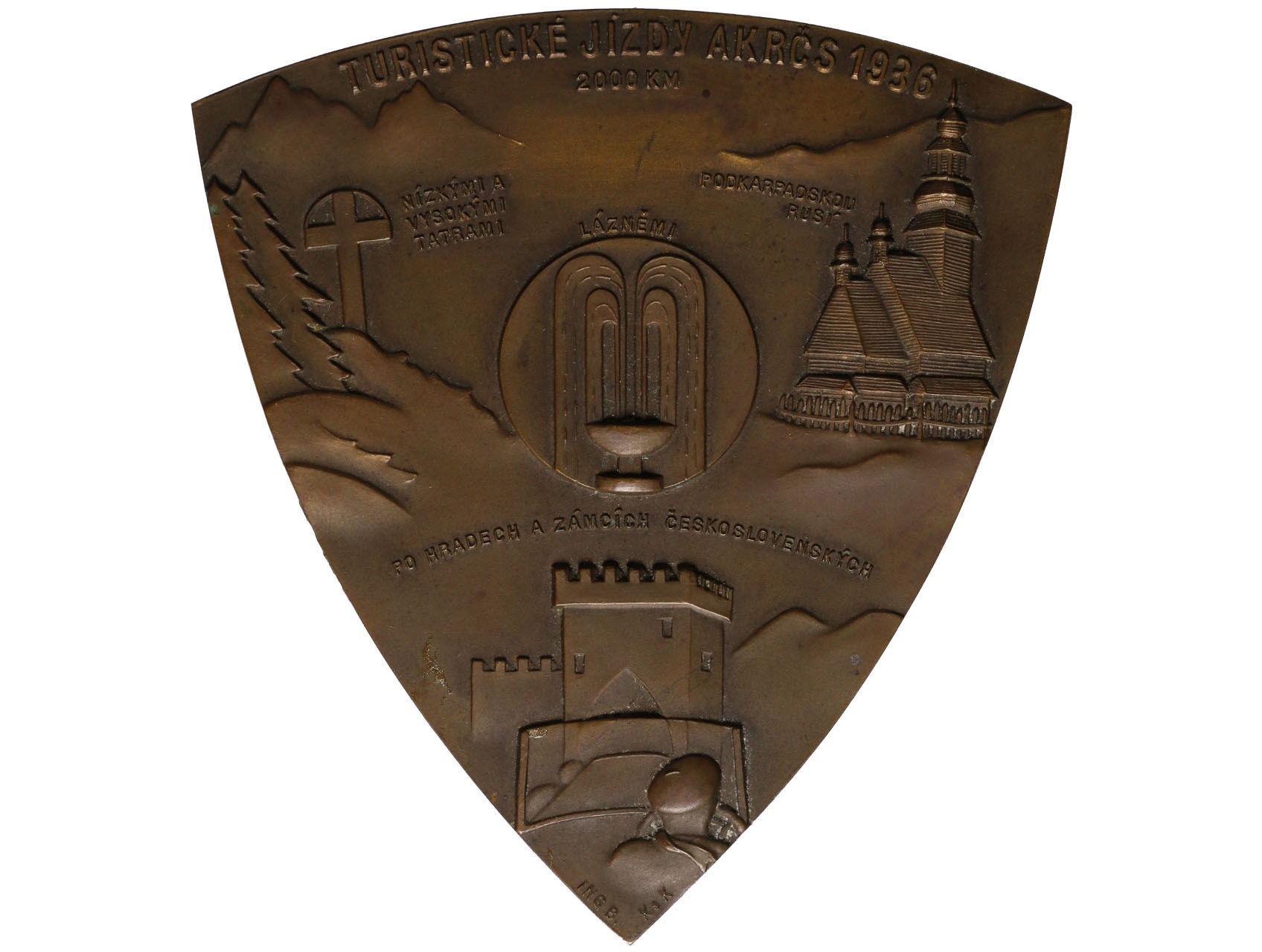 Motorismus - Československo, bronzová jednostranná plaketa Turistické jízdy AKRČS 1936, rozměry 85x80 mm