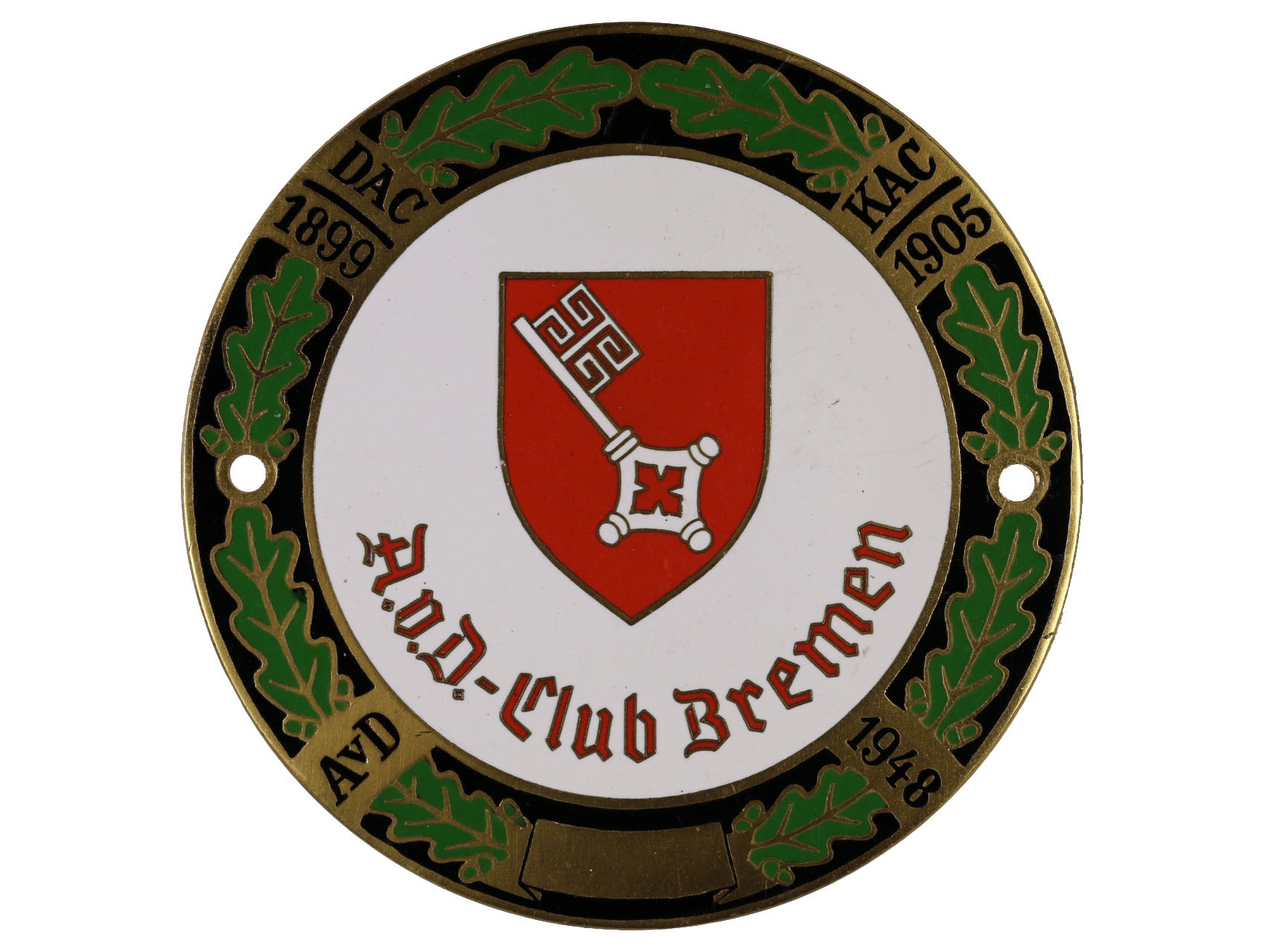 Motorismus - Německo, smaltovaná plaketa A. v. D. Club Bremen, dva otvory pro uchycení na chladič, průměr 100 mm