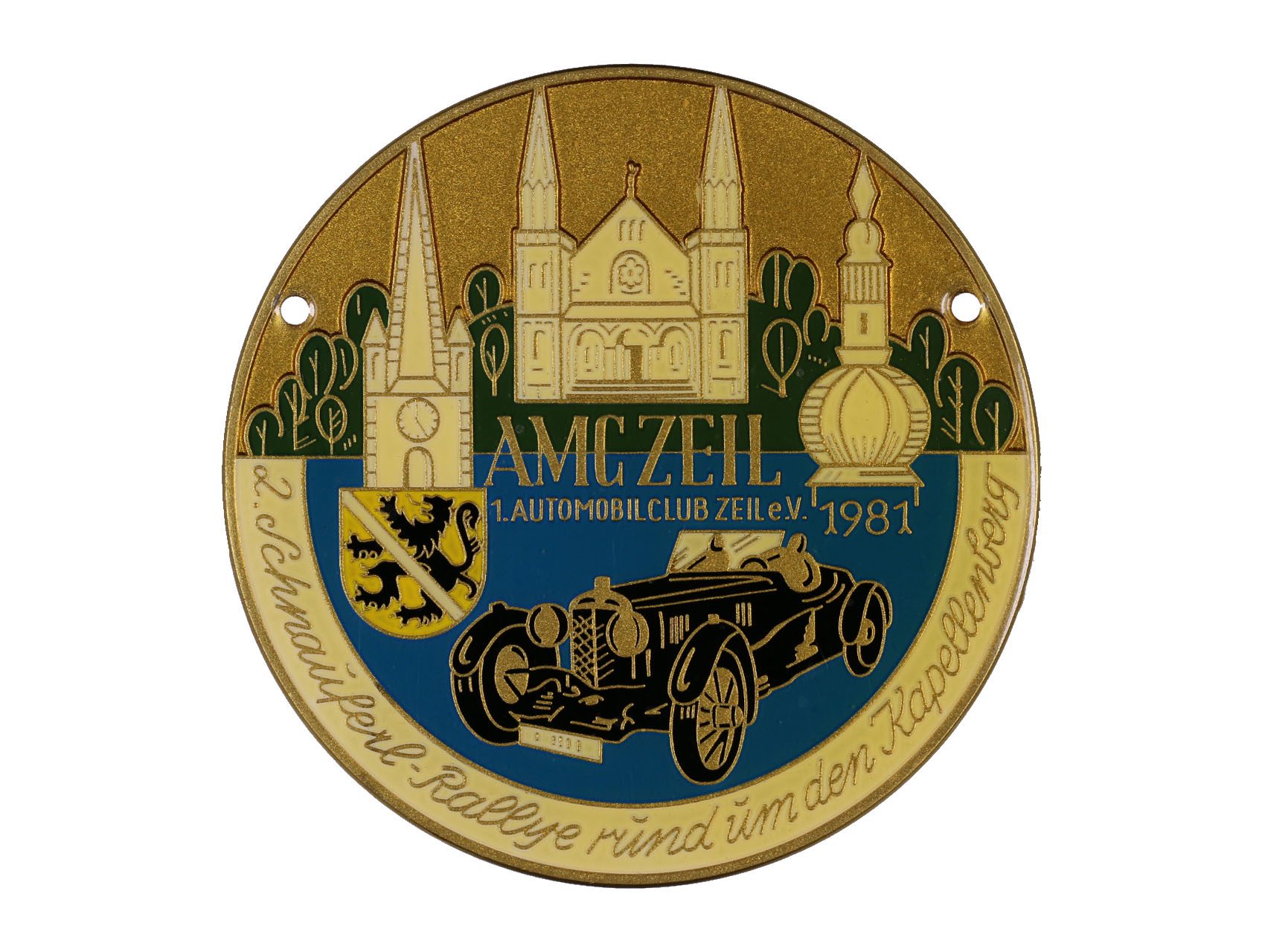 Motorismus - Německo, smaltovaná plaketa AMC ZEIL 1981, dva otvory pro uchycení na chladič, průměr 90 mm