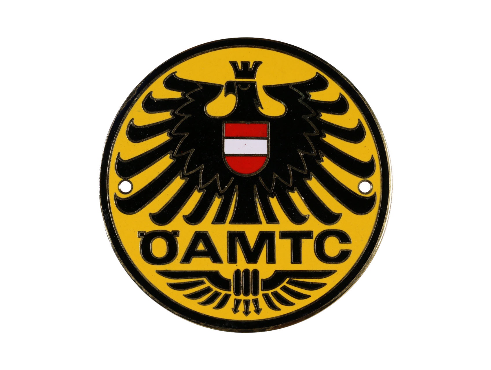 Motorismus - Rakousko, smaltovaná plaketa OAMTC, dva otvory pro uchycení na chladič, průměr 80 mm