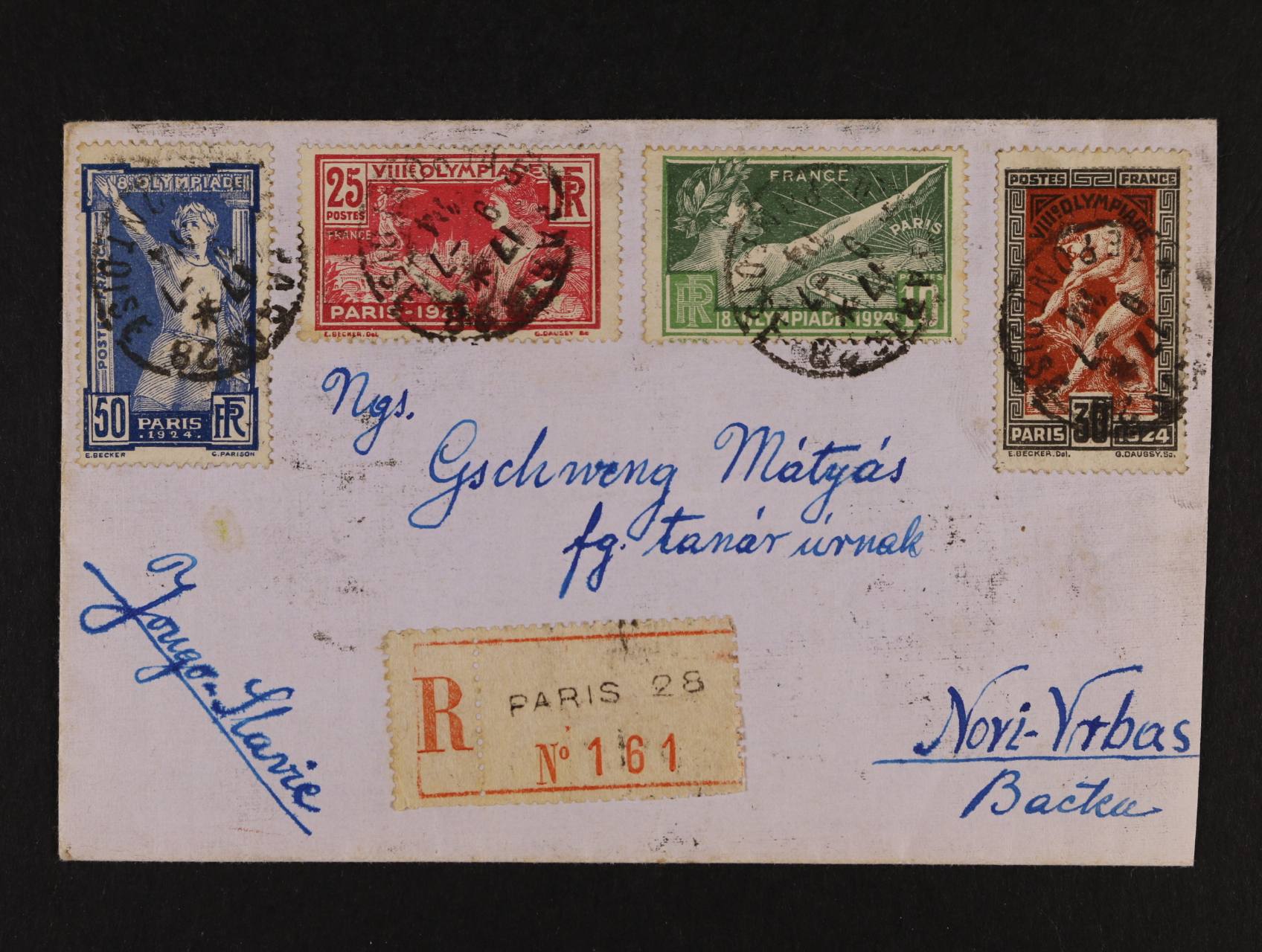 R-dopis do Jugoslávie frank. ma přední str. zn. Mi. č. 169 - 72, na zadní str. zn. Mi. 169 (3x) a zn. Mi. 140, pod. raz. PARIS, přích. raz. NOVI VRBAC 13.9.24, zajímavé
