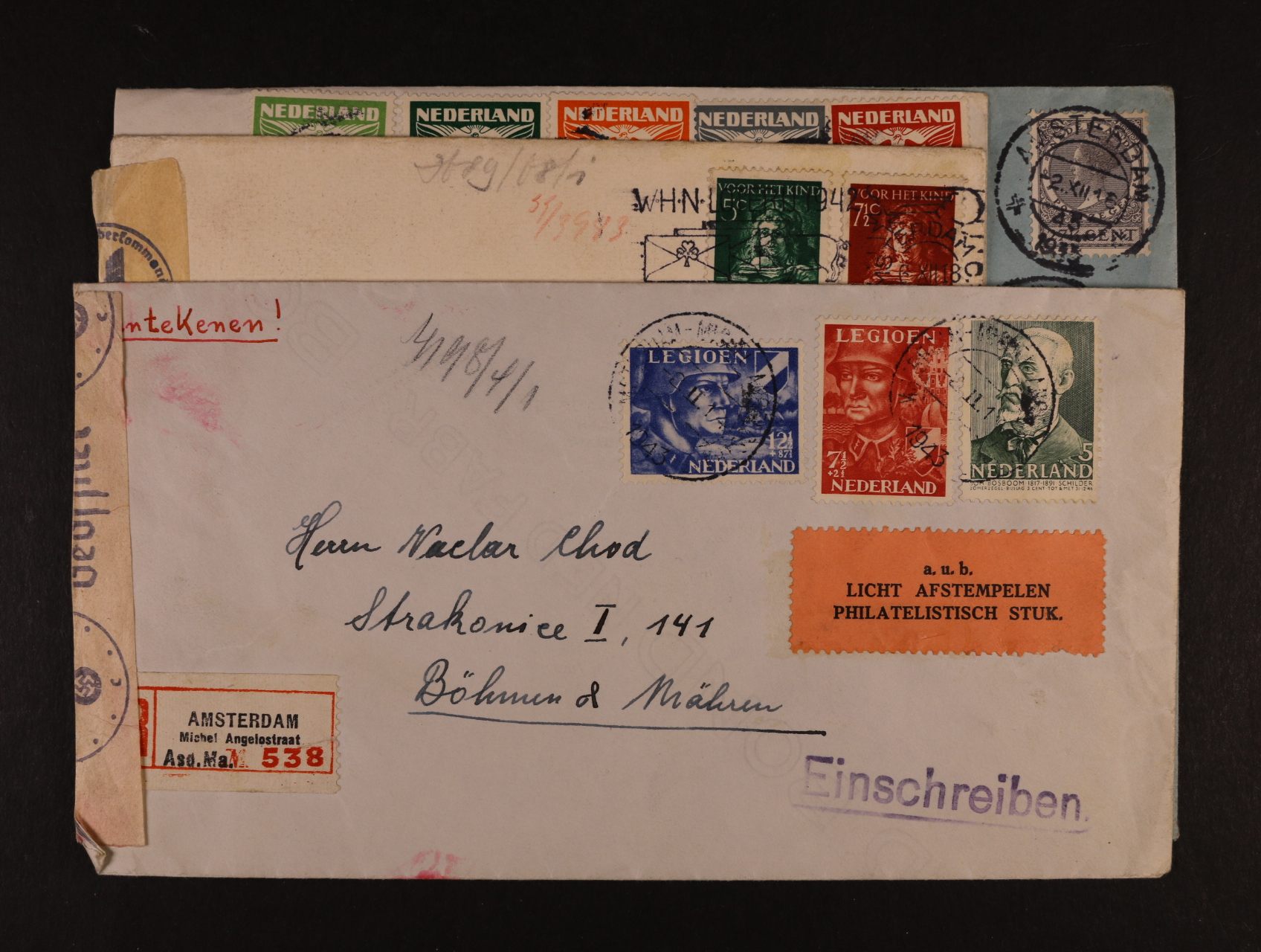 sestava 5 ks R-dopisů do Protektorátu, zajímavé pestré frankatury, cenzurní pásky, razítka