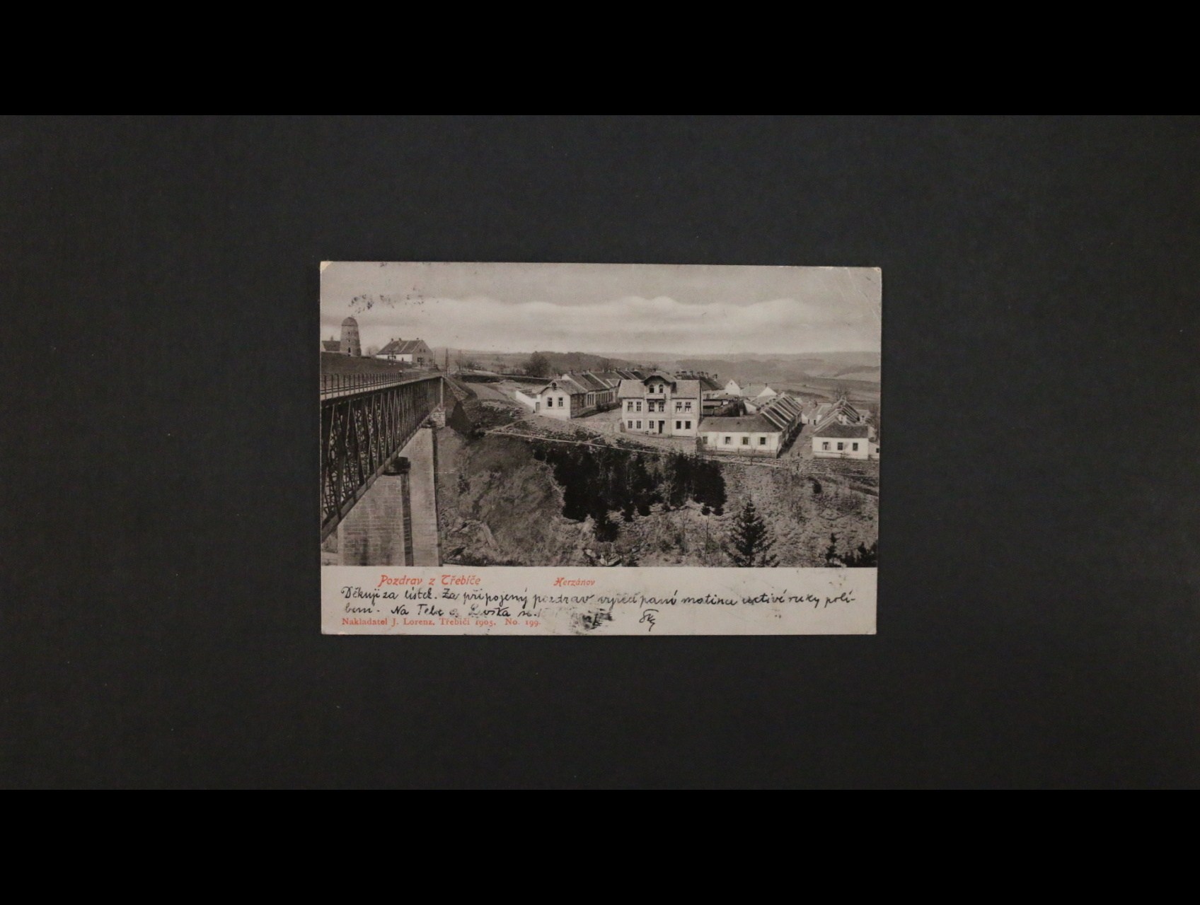 Třebíč - jednobar. litografie, dl. adresa, použitá 1905