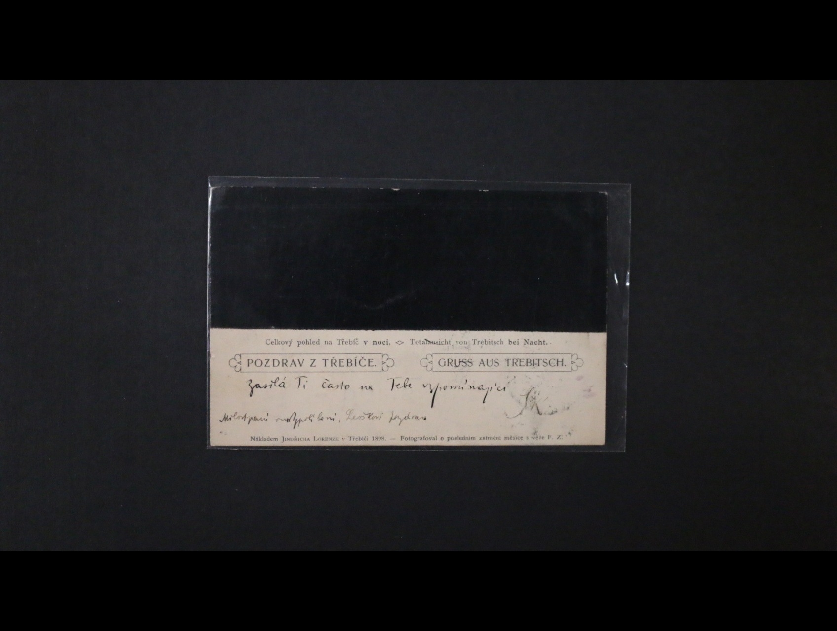 Třebíč - jednobar. pohlednice - celkový pohled na Třebíč v noci, dl. adresa, použitá 1903, zajímavé