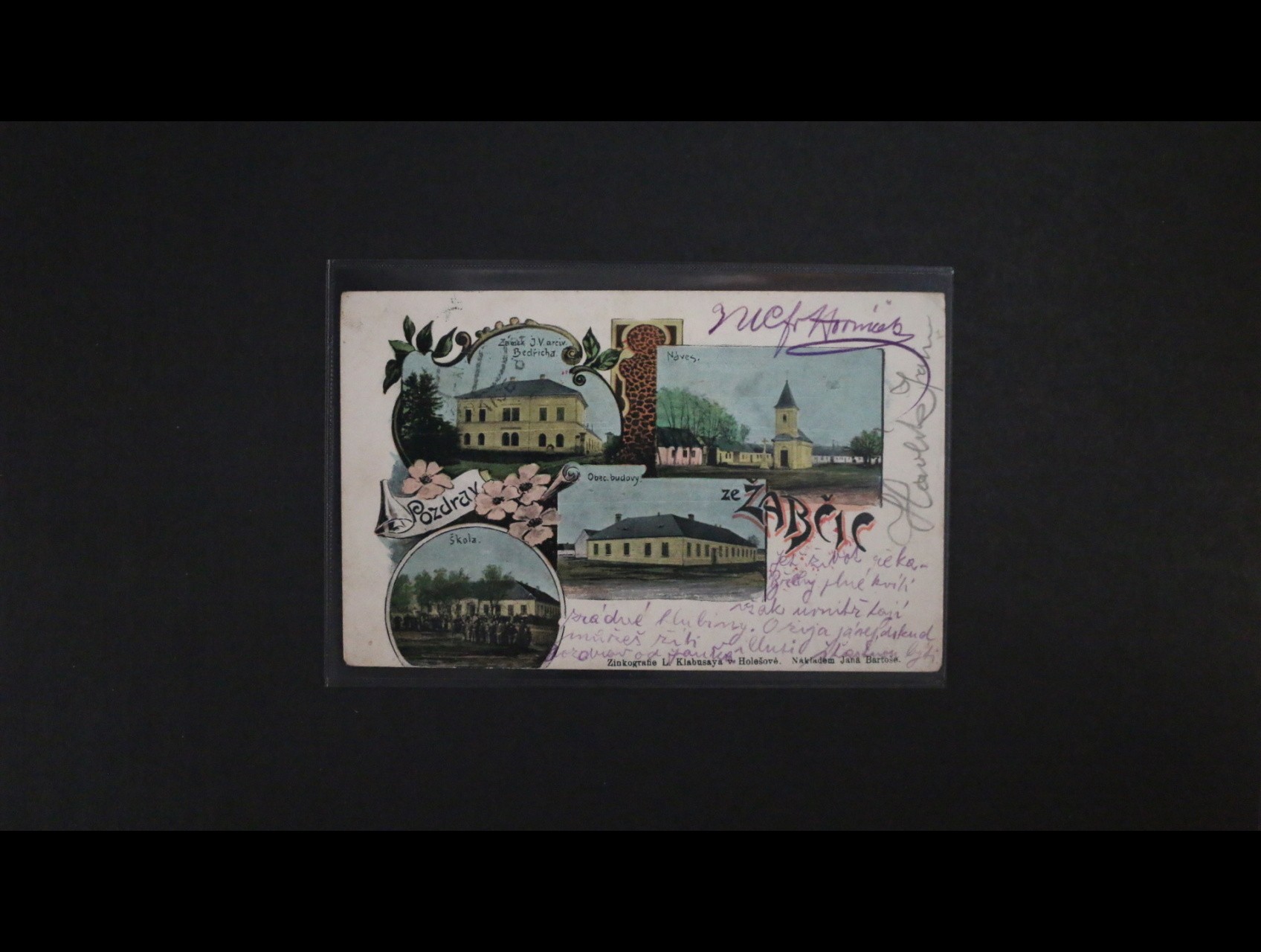 Žabčice okr. Brno venkov - bar. čtyřokénková pohlednice prošlá 1906