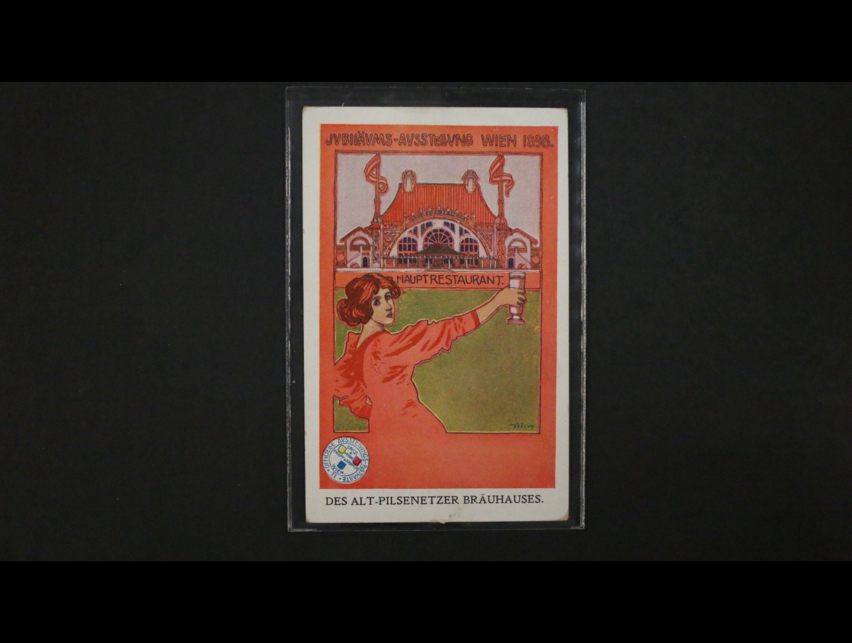 Vídeň - bar. secesní pohlednice z jubilejní výstavy WIEN 1898 DES ALT - PILSENTZER BRAUHAUSES, dl. adresa, nepoužitá, dobrá kvalita