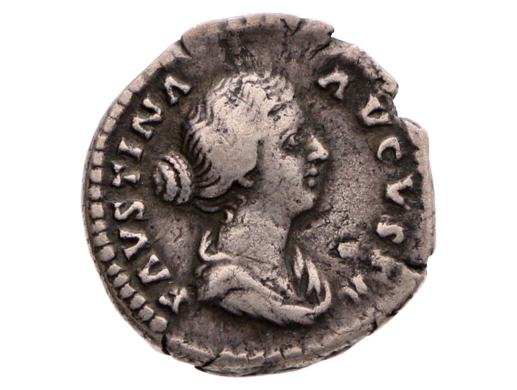 Řím císařství, Faustina Minor 176, manželka Marka Aurelia - AR Denár. Poprsí vpravo, FAVSTINA AVGVSTA / Diana stojící vlevo, DIANA LVCIF. 3,13 g. RIC 674, KAMP 38.39