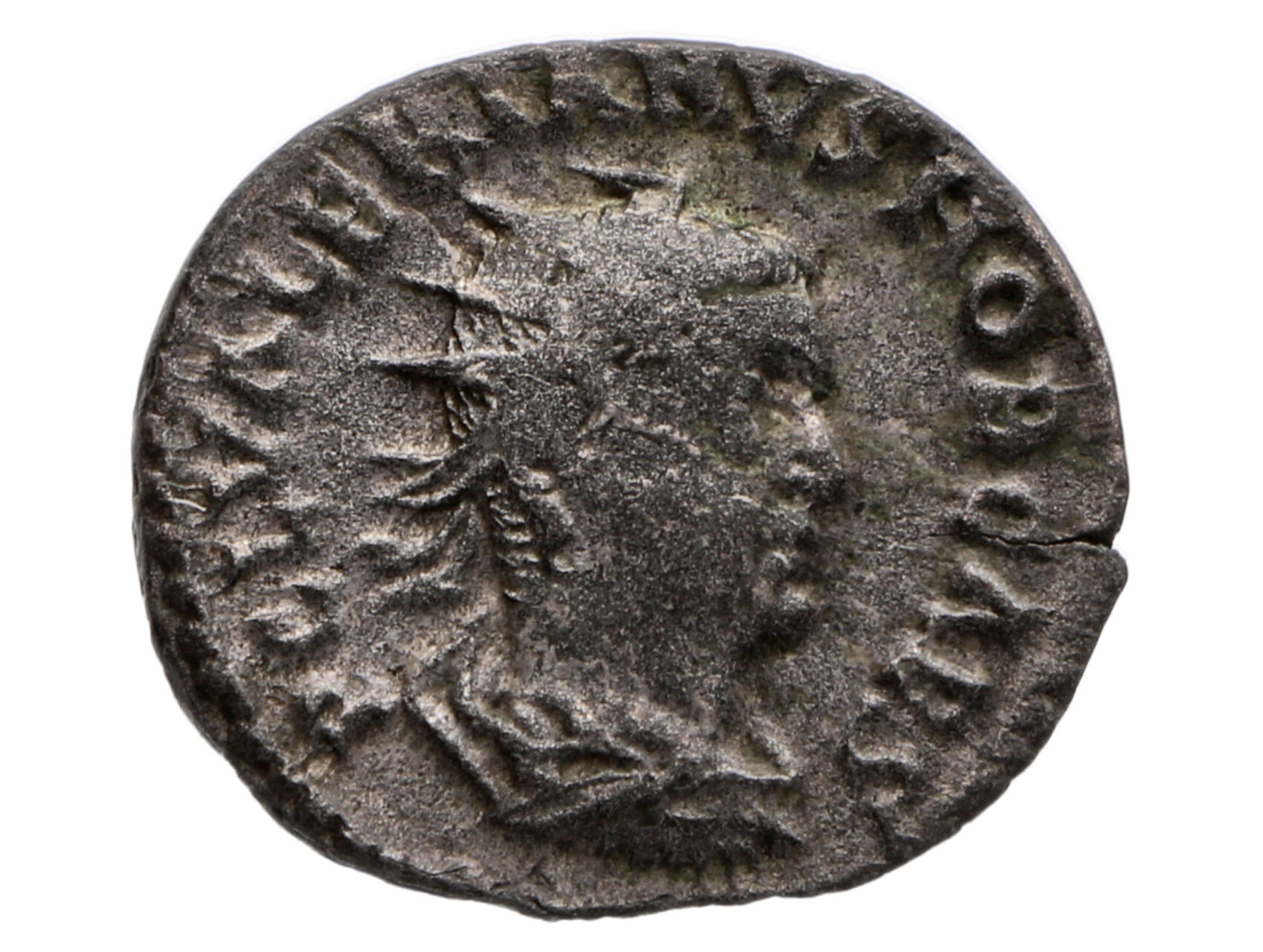 Řím císařství, Valerianus II. 256-258 - AR Antoninian. Hlava panovníka s paprskovitou korunou vpravo, P C L VALERIANVS NOB CAES / Dítě Jupiter jezdící na koze vpravo, IOVI CRESCENTI. 2.76 g. KAMP 92.2