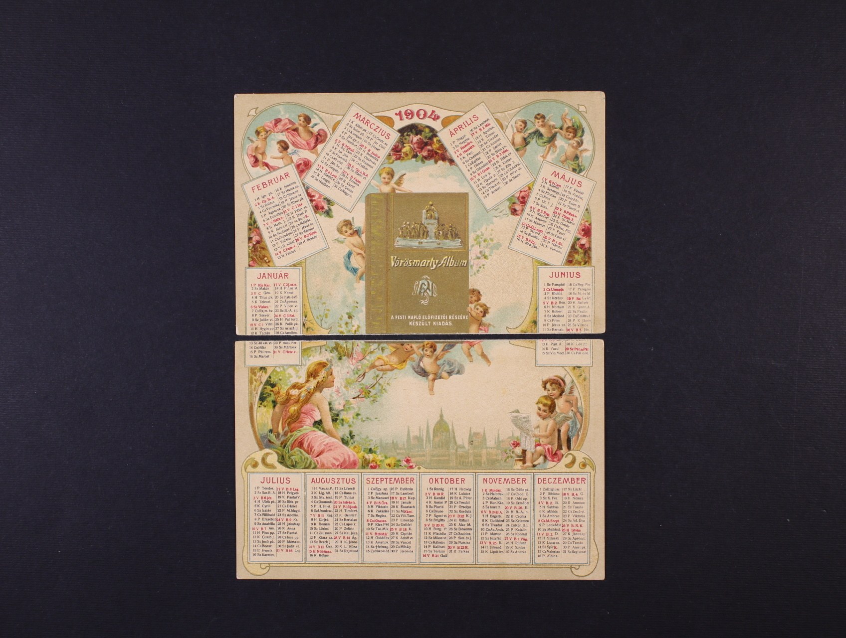 Umělecké - bar. litograf. koláž Kalendář 1904 - dvoudílá rozříznutá, dl. adresa, nepoužitá