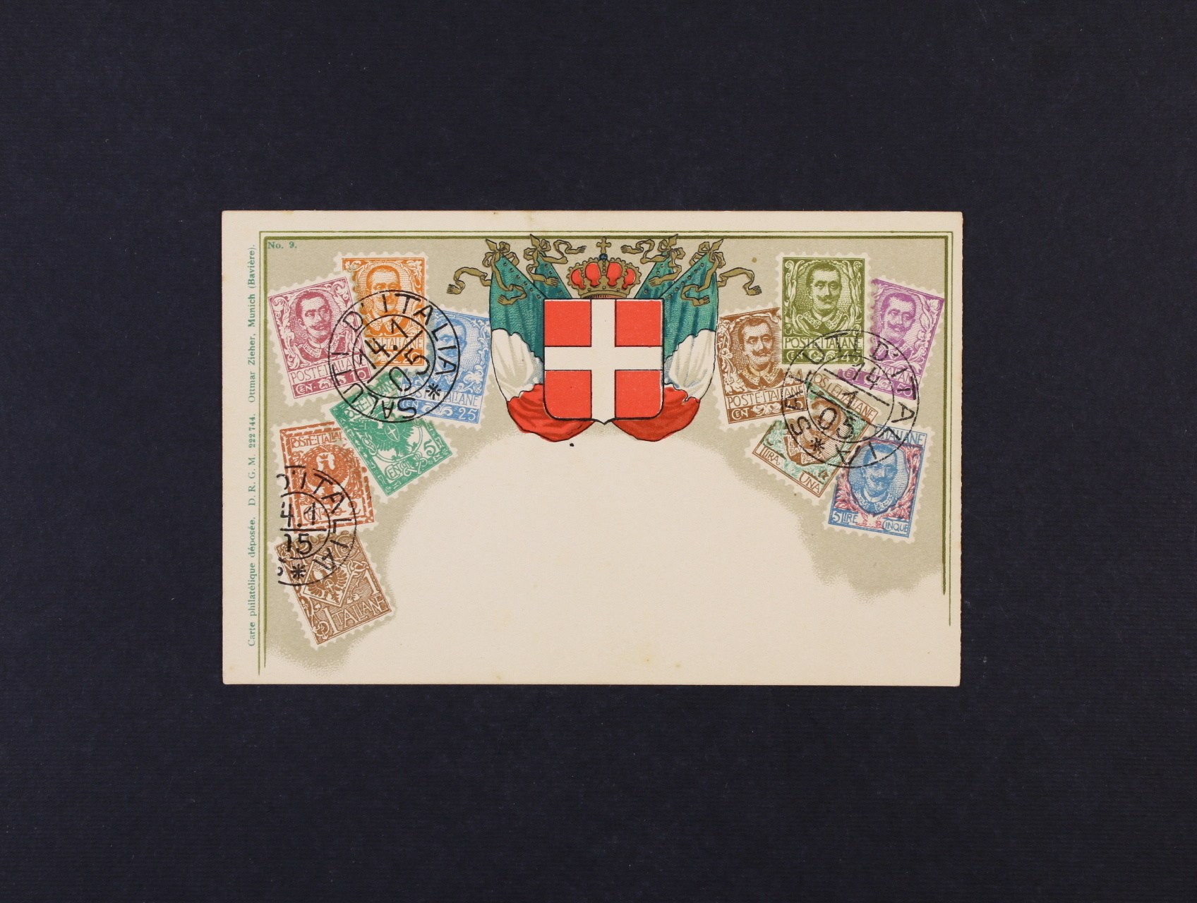 Známky - Itálie - bar. litograf. koláž, dl. adresa, nepoužitá