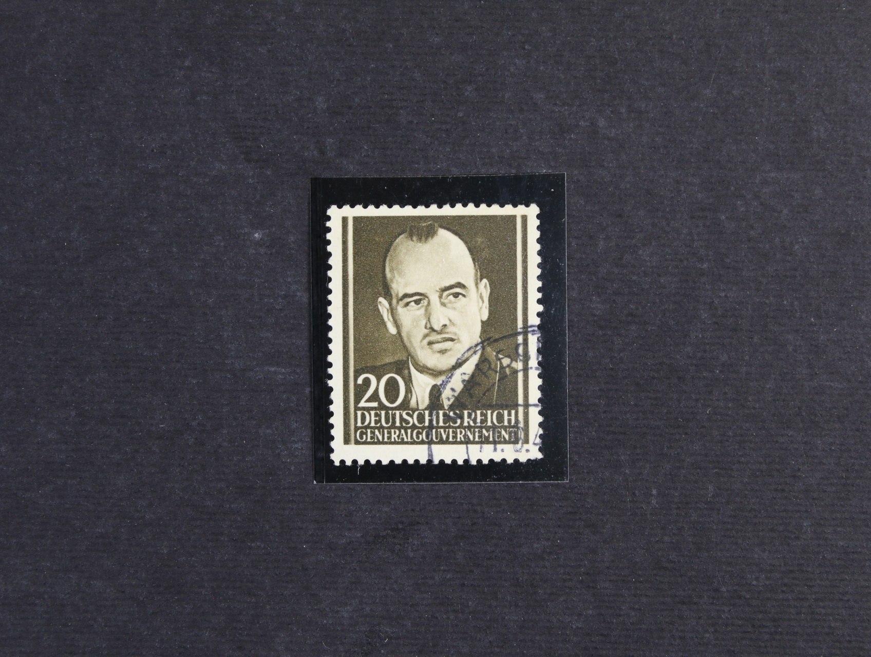 Generalgouvernament - britské válečné propag. falzum zn. Mi. č. 77 s portrétem gen. guvernéra Franka namísto A.H. (kat. Mi. Kriegs - und Propagandafälsungen pod č. 33), na zn. v pravém spodním rohu část raz. WARSCH... 11.6.4., 1500 EUR, velmi zajímavé