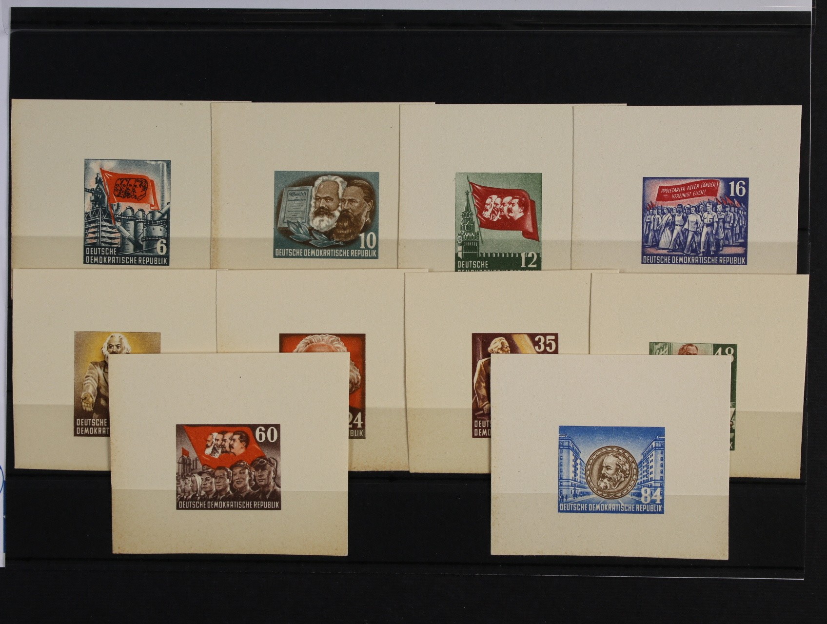 zn. Mi. č. S 344 - S 353 v orig. barvách na kouscích karton. papíru, jedná se o spec. tisky z ministerského sešitku